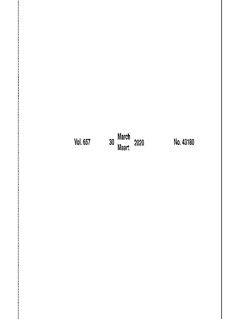 Vol. 65730 March Maart 2020No. 431802No. 43180GOVERNMENT GAZETTE, 30 MARCH 2020Contents No.GazettePageNo.No.GOVERNMENT NOTICES GOEWERMENTSKENNISGEWINGS National Treasury! Nasionale Tesourie 428 Division