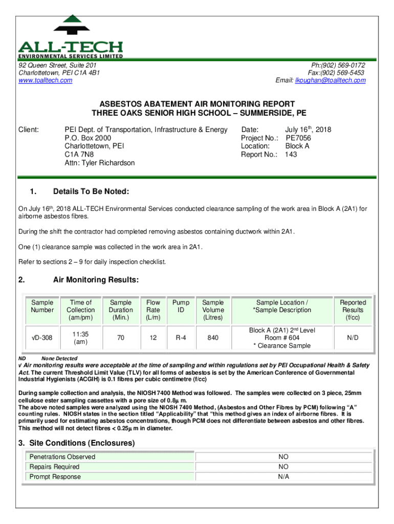 Email: lkoughan@toalltech.comASBESTOS ABATEMENT AIR MONITORING REPORT