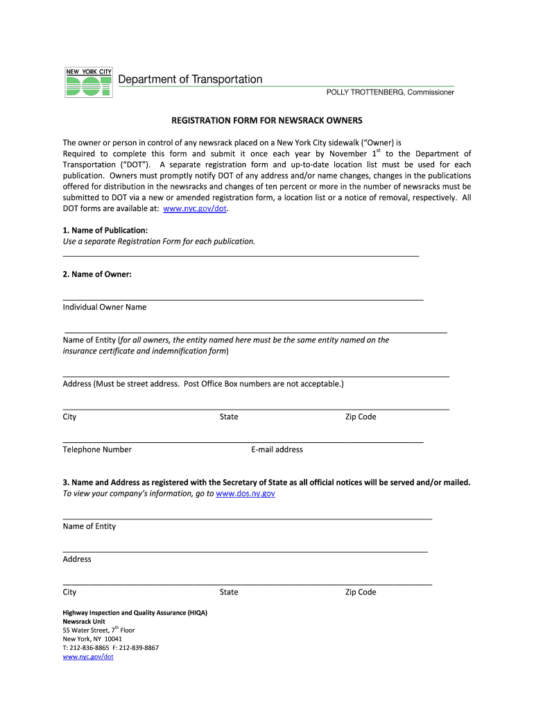 Get the free REGISTRATION FORM FOR NEWSRACK OWNERS The owner or ... - nyc