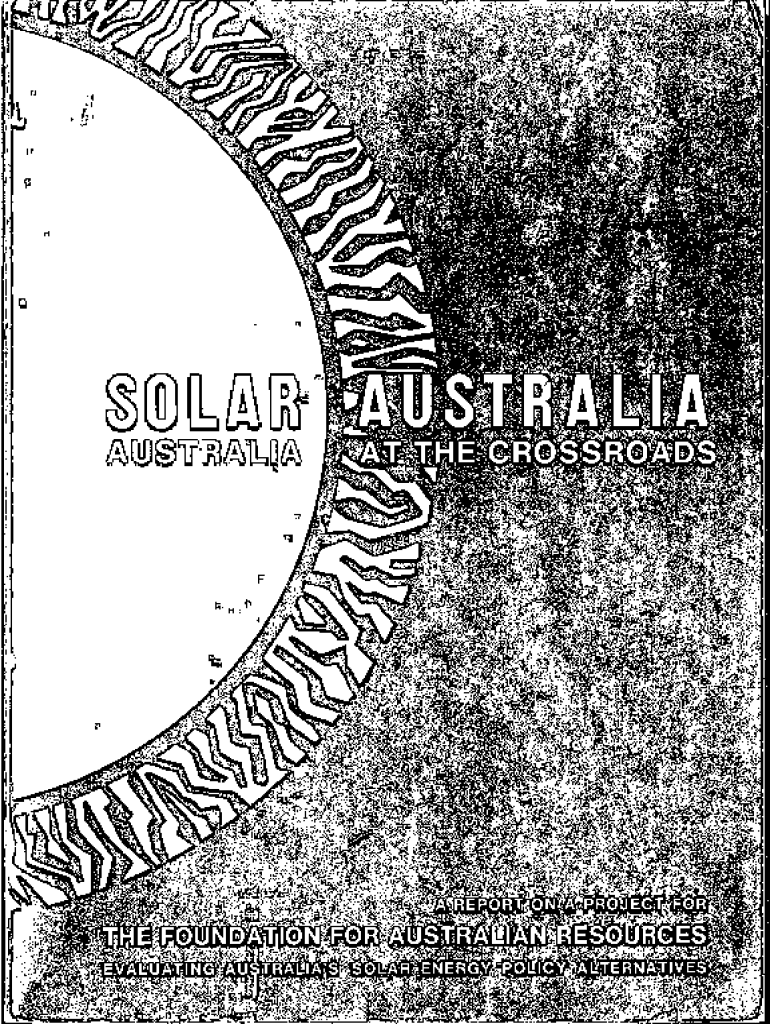 .:egi:l\"\'\"..,.:ffi2__ ;:.;:;;QI _.........Q:5SOLAR AUSTRALIA \'\"AUSTRALIA AT THECROSSROADSA REPORT ON A PROJECT FOR THE FOUNDATION FOR AUSTRALIAN RESOURCES EVALUATING AUSTRALIA\'S SOLAR ENERGY