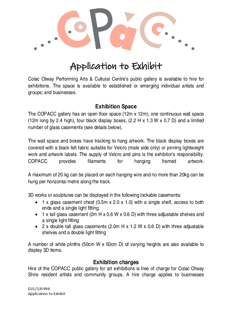 To fill out the Colac Otway Performing Arts form, provide all required information such as event details, participant information, and any supporting documentation as specified in the guidelines.