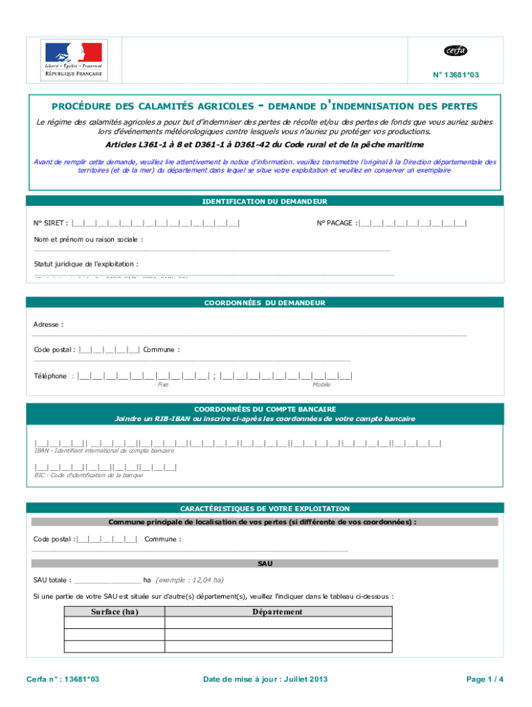 N 13681×03PROCDURE DES CALAMITY AGRICOLA DEMAND D\'INDENTATION DES Pertest regime DES calamity Agricola a pour but dindemniser DES perter de role et/of DES perter de finds Que vows buried rubies