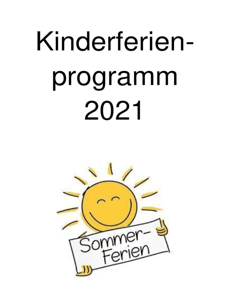 Kinderferienprogramm 2021Liebe Kinder und Jugendliche, liebe Eltern und Veranstalter, Bald beginnen die Sommerferien!Damit es Euch nicht gar so langweilig wird und Ihr etwas erleben knnt, haben die
