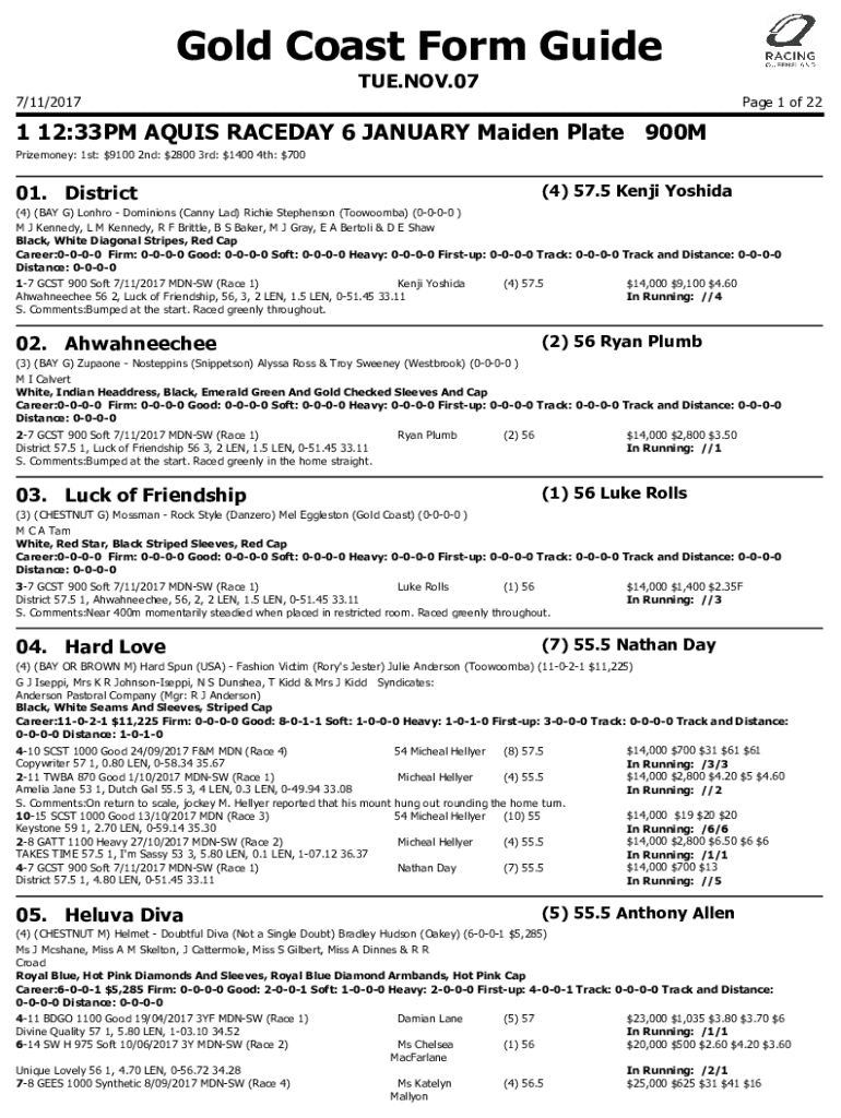 Get the free Aquis Park Gold Coast Poly Printable Form Guide
