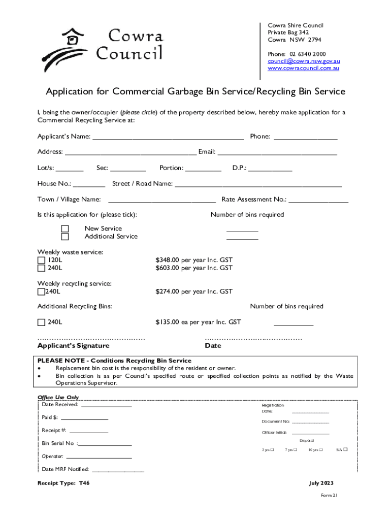 Get the free Application for Mobile Garbage Bin Service/Recycling ...