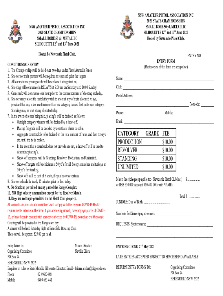 SILHOUETTE 12th and 13th June 2021NSW AMATEUR PISTOL ASSOCIATION INC