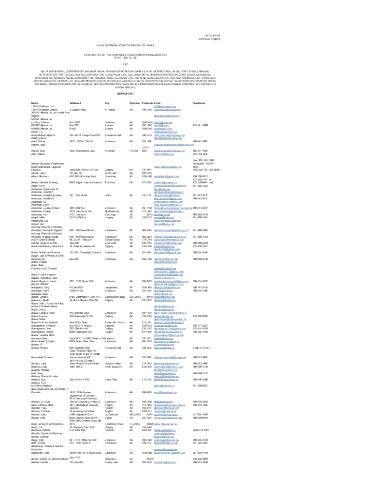 No. S113459 Vancouver Registry IN THE SUPREME COURT OF BRITISH COLUMBIAIN THE MATTER OF THE COMPANIES CREDITORS ARRANGEMENT ACT, R.S.C. 1985, C.c36 AND BUL RIVER MINERAL CORPORATION, BIG BEAR METAL
