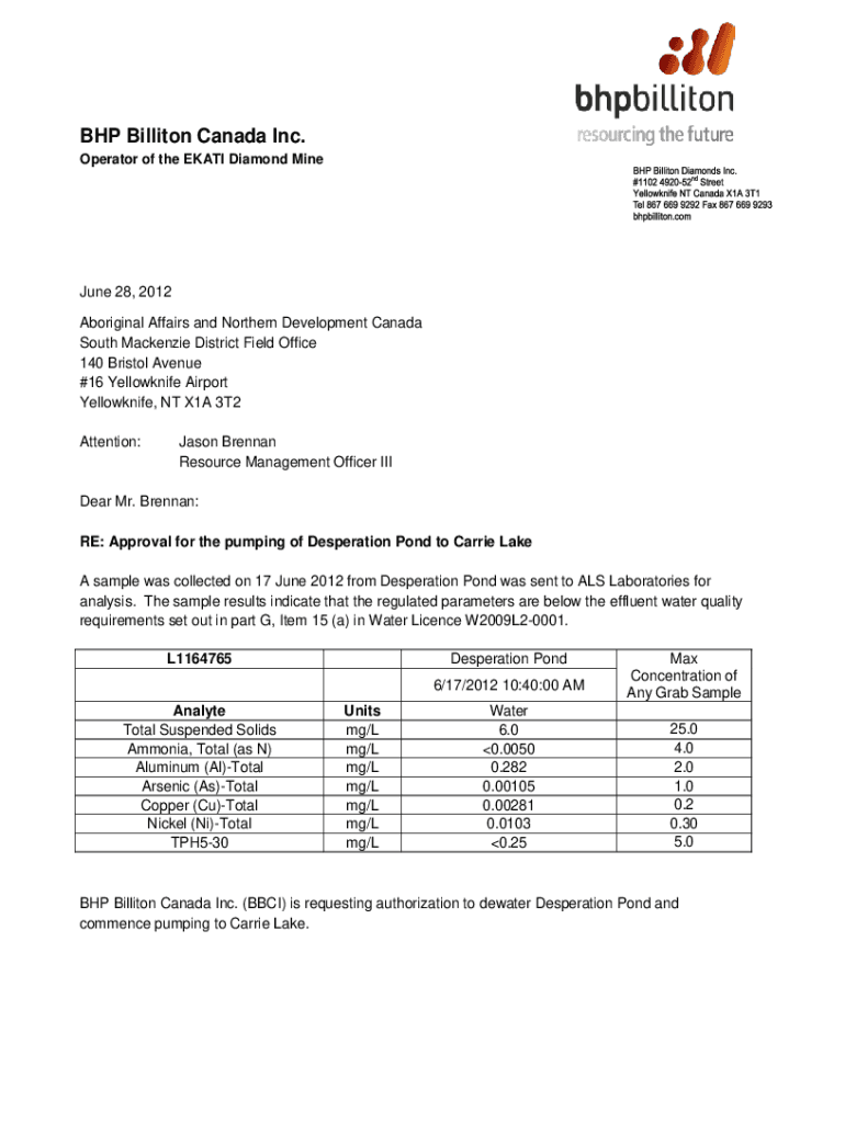 Get the free BHP Billiton Canada Inc. - Operator of the EKATI Diamond ...