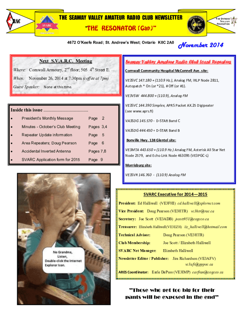 THE SEAWAY VALLEY AMATEUR RADIO CLUB NEWSLETTER