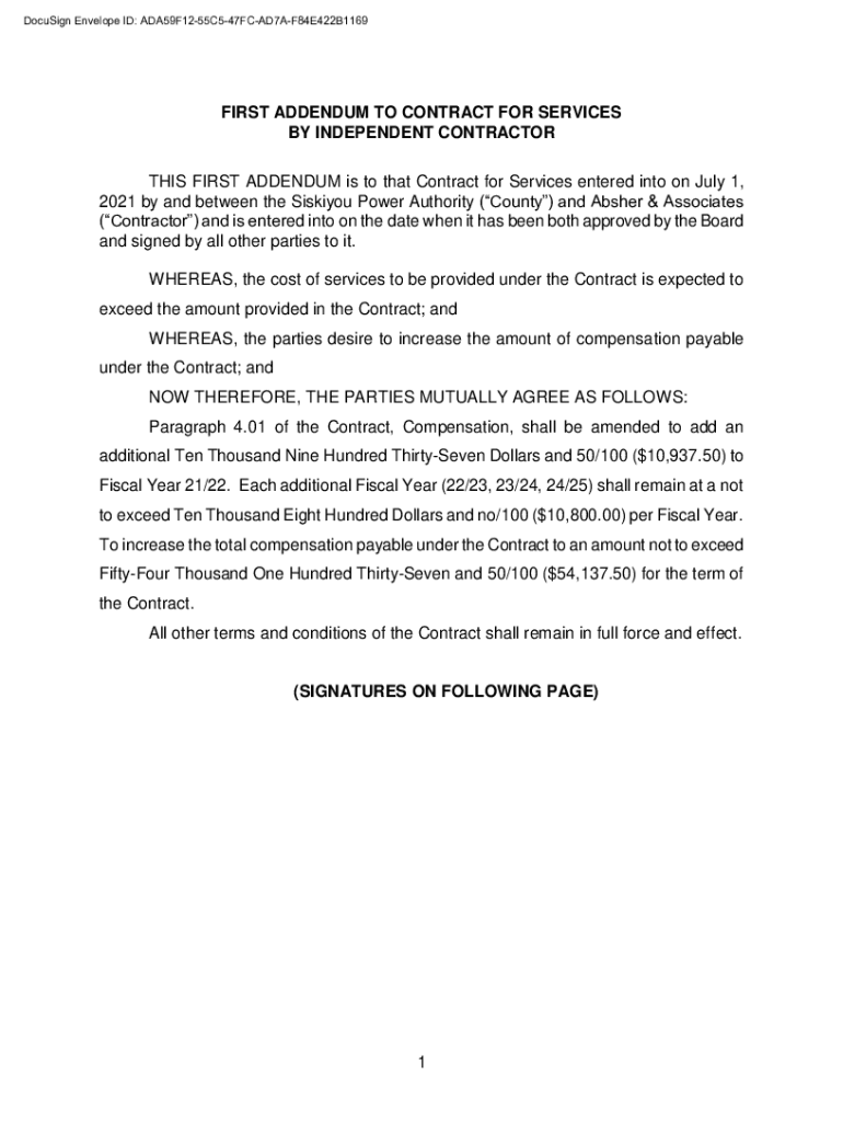 Get the free THIS FIRST ADDENDUM is to that Contract for Services entered into on July 1,