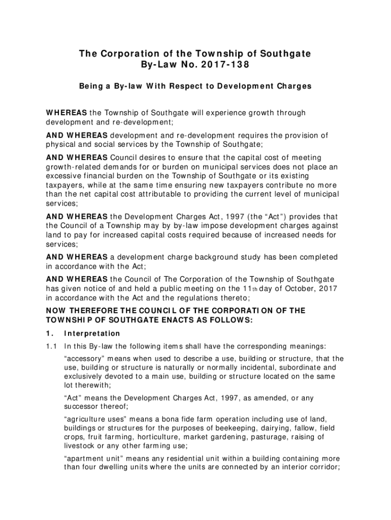 Being a Bylaw With Respect to Development Charges