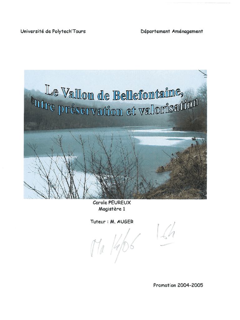 Auteur : M. AUGERPromotion 20042005Le Gallon de Bellefontaine, entire preservation et valorization.