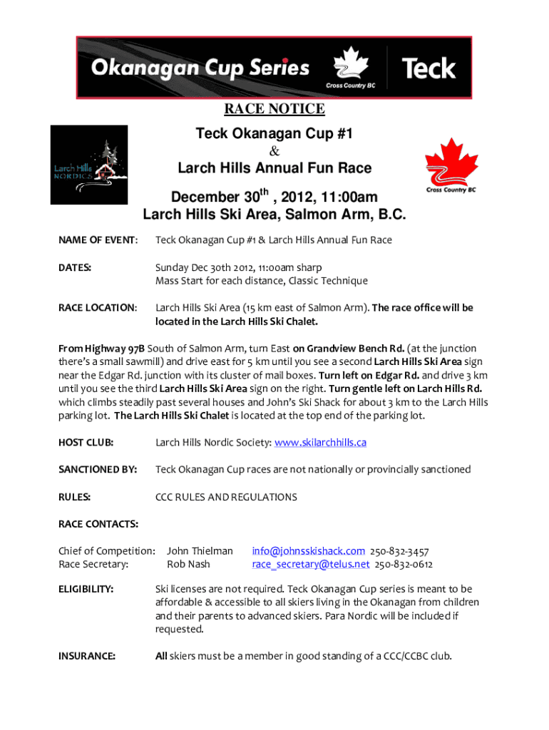 Get the free RACE NOTICE Teck Okanagan Cup #3 & 4 & Larch Hills ...