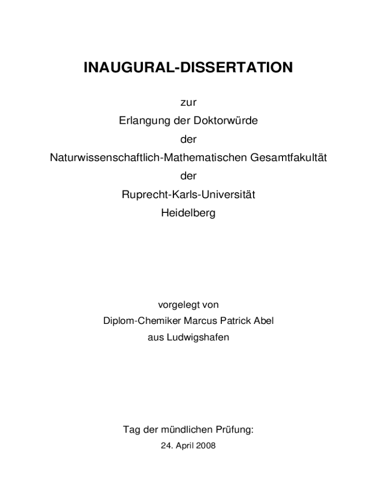 INAUGURALDISSERTATION zur Erlangung der Doktorwrde der NaturwissenschaftlichMathematischen Gesamtfakultt der RuprechtKarlsUniversitt Heidelbergvorgelegt von DiplomChemiker Marcus Patrick Abel aus