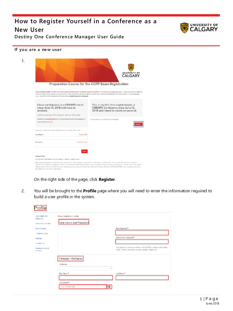How to Register Yourself in a Conference as a New User Destiny One Conference Manager User Guide If you are a new user 1. On the right side of the page, click Register. 2. You will be brought to the