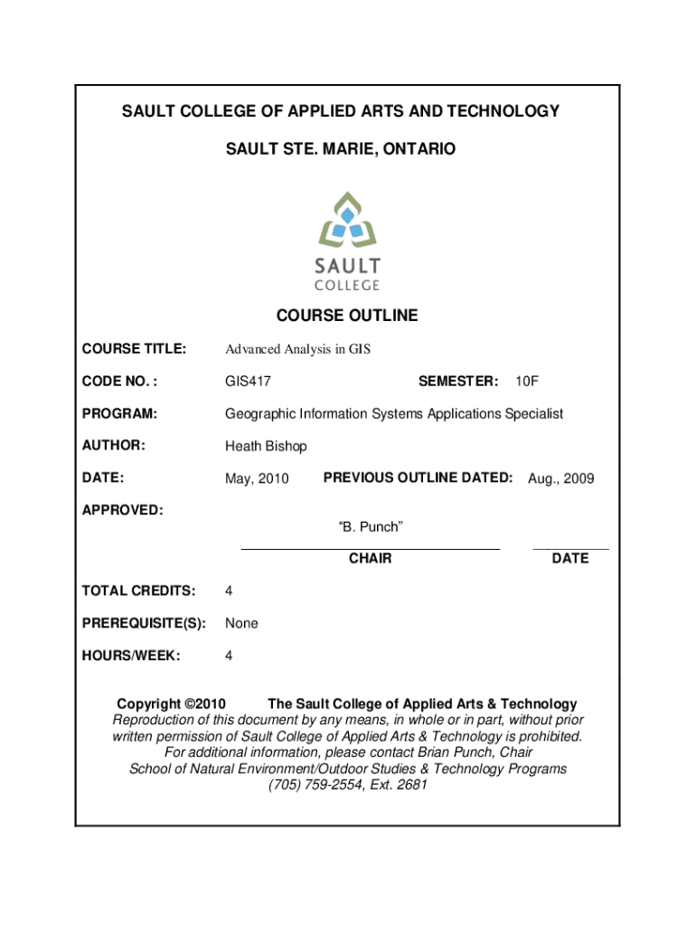 Get the free Advanced Analysis in GIS GIS417 - Sault Ste. Marie