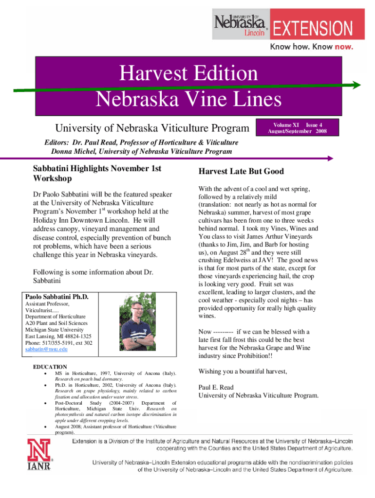 Get the free Viticulture ProgramUniversity of Nebraska - Lincoln Research - viticulture unl