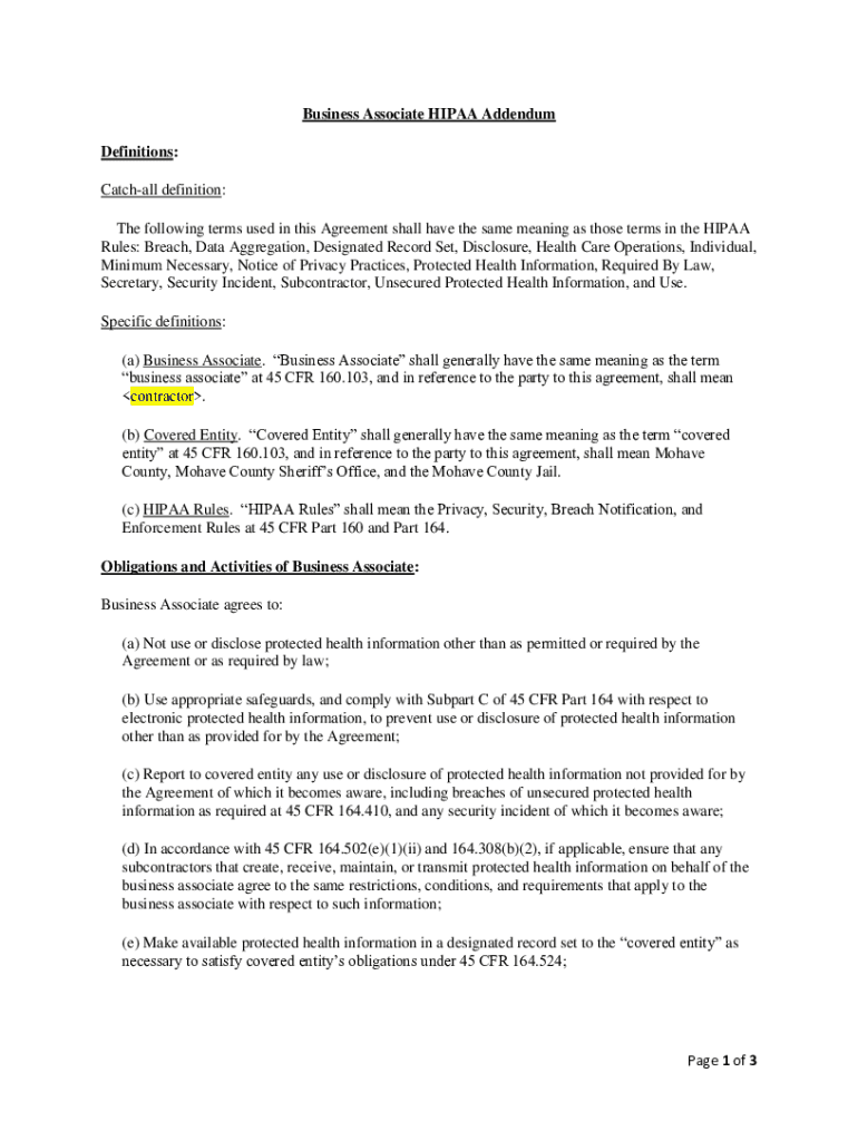 Get the free Business Associate Agreement I. Definitions Catch-all ...