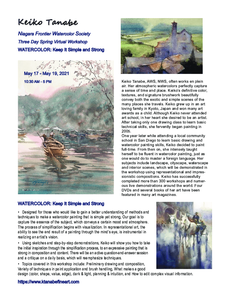 The purpose of the Niagara Frontier Watercolor Society is to support and promote watercolor painting as an art form in the local community.