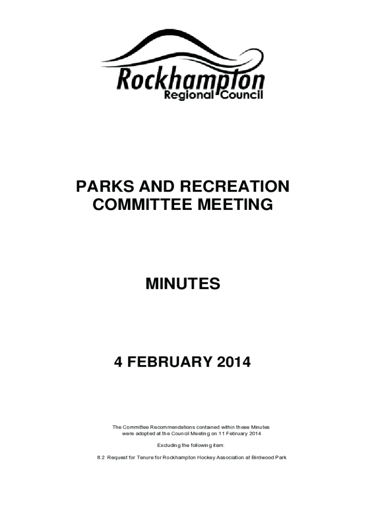 PARKS AND RECREATION COMMITTEE MEETINGMINUTES4 FEBRUARY 2014The Committee Recommendations contained within these Minutes were adopted at the Council Meeting on 11 February 2014 Excluding the following