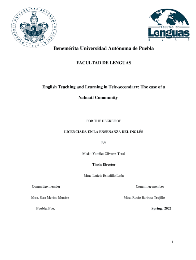 FACULTY DE LENGUASEnglish Teaching and Learning in Telesecondary: The case of a