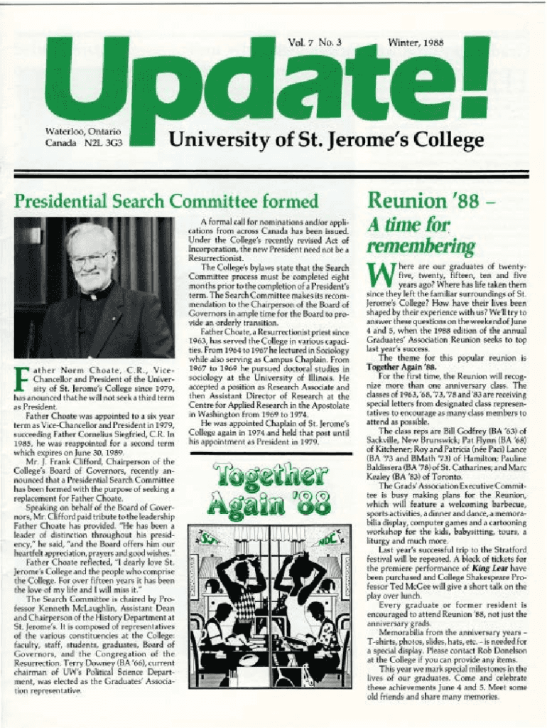 Canada N2L 3G3University of St. Jerome\'s CollegePresidential Search Committee forefather Norm Create, C. R., Vice