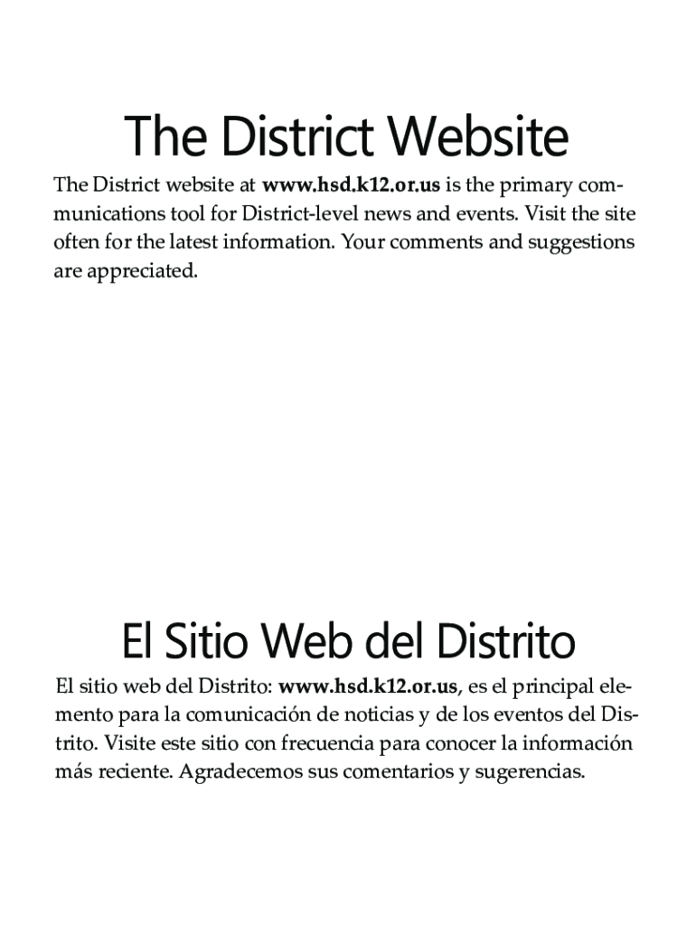 The District Website The District website at www.hsd.k12.or.us is the primary communications tool for Districtlevel news and events. Visit the site often for the latest information. Your comments