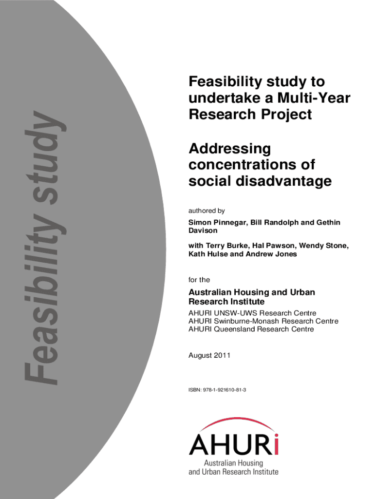 Feasibility studyFeasibility study to undertake a MultiYear Research Project Addressing concentrations of social disadvantage authored bySimon Pinnegar, Bill Randolph and Gethin Davison with Terry