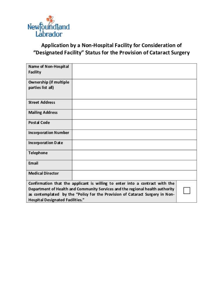Get the free Application by a Non-Hospital Facility for Consideration of...