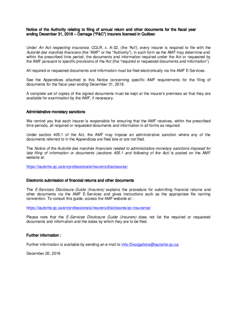 Get the free Notice of the Authority relating to filing of annual return and ... - lautorite qc