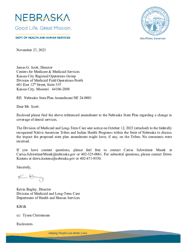 November 27, 2023James G. Scott, Director Centers for Medicare & Medicaid Services Kansas City Regional Operations Group Division of Medicaid Field OperationsNorth 601 East 12th Street, Suite 355