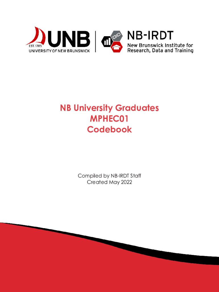 NB University Graduates MPHEC01 CodebookCompiled by NBIRDT Staff Created May 2022MPHEC01 CodebookHow to Obtain More Information For more information about this Codebook or other services and data