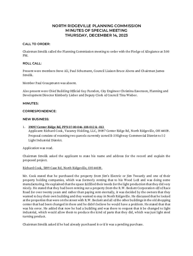 Get the free NORTH RIDGEVILLE CITY COUNCIL REGULAR ...