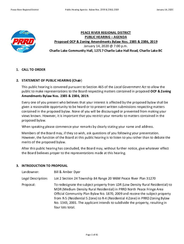 Peace River Regional DistrictPublic Hearing Agenda Bylaw Nos. 2359 & 2360, 2019January 14, 2020PEACE RIVER REGIONAL DISTRICT