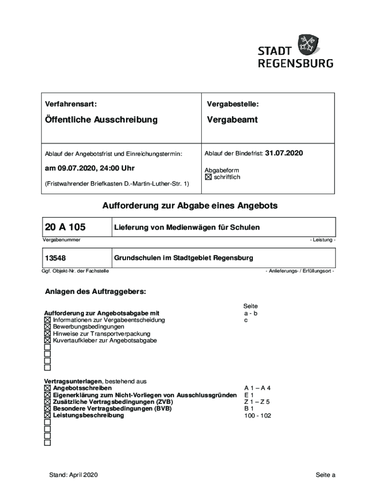 Verfahrensart:Vergabestelle:ffentliche AusschreibungVergabeamtAblauf her Angebotsfrist UND Einreichungstermin:Ablaze her Binders: 31.07.2020am 09.07.2020, 24:00 UhrAbgabeform