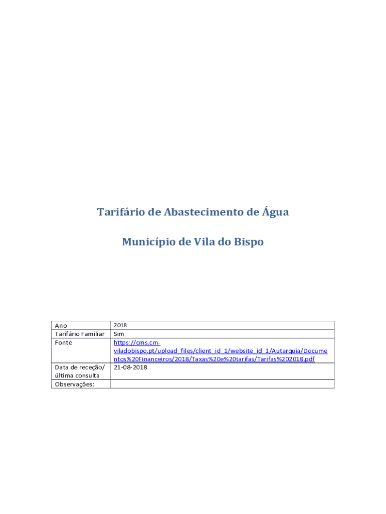 Obtenha o gratuito Tarifrio de Abastecimento de gua Municpio de Vila do ...