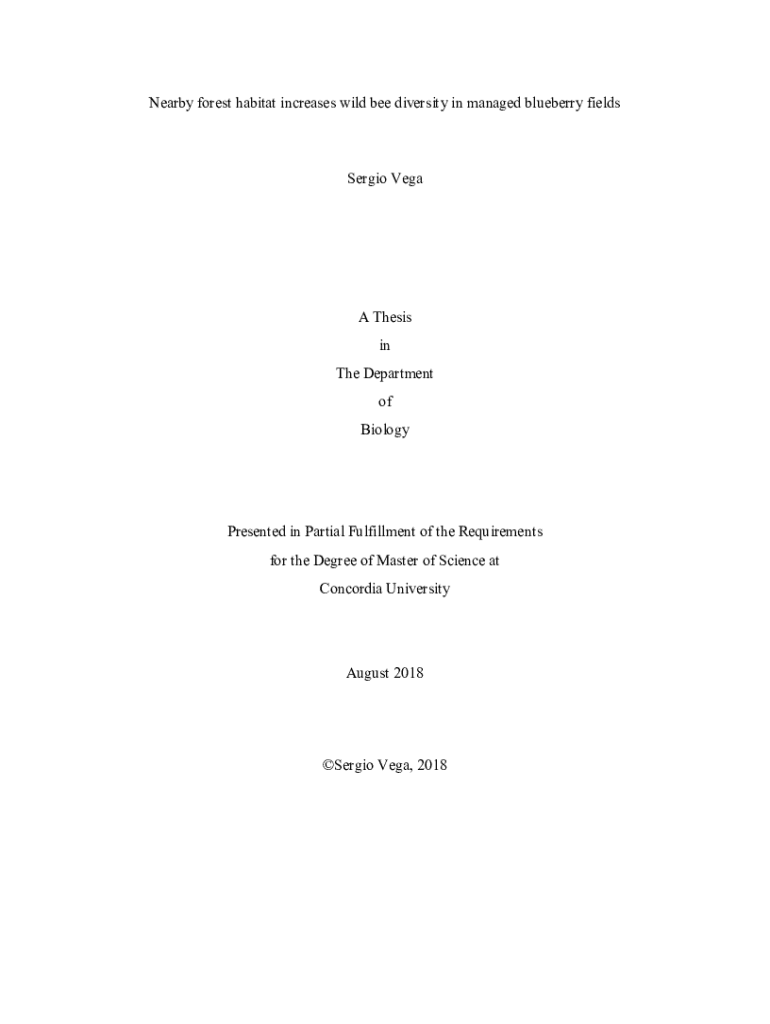 Nearby forest habitat increases wild bee diversity in managed blueberry fieldsSergio VegaA Thesis in The Department of BiologyPresented in Partial Fulfillment of the Requirements for the Degree of