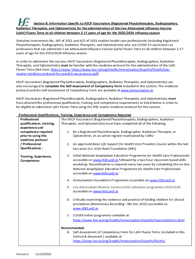 Get the free National Protocol for Live attenuated influenza vaccine nasal ...