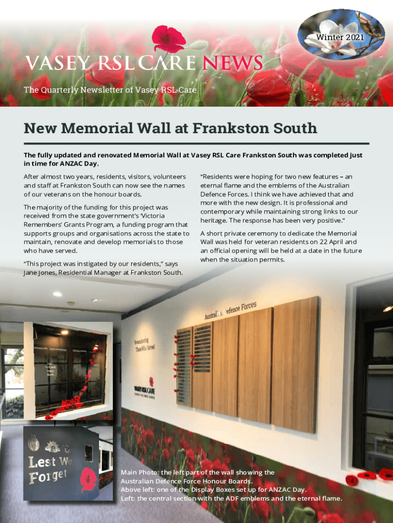 Winter 2021The Quarterly Newsletter of Visa SL Carney Memorial Wall at Franks ton South
