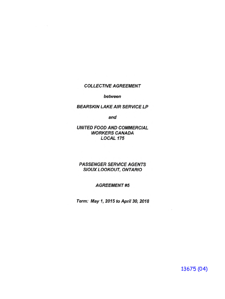 SIOUX LOOKOUT, ONTARIOAGREEMENT #5Term: May 1, 2015, to April