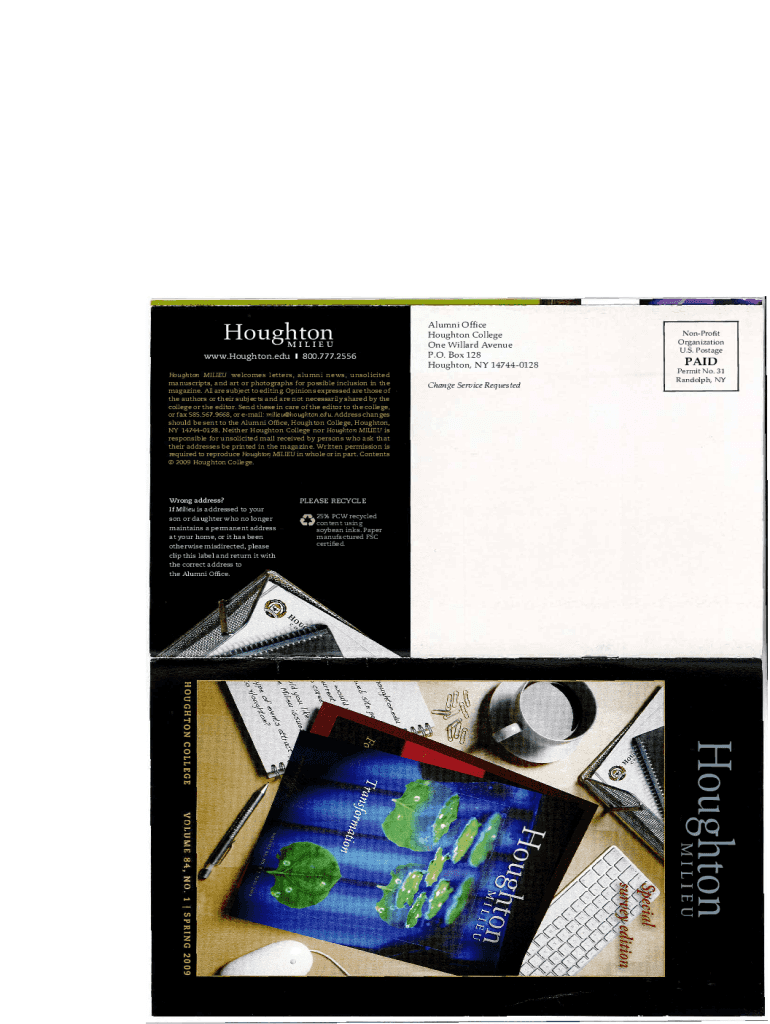 HoughF19Rwww.Houghton.edu I 800.777.2556Alumni Office Houghton College One Willard Avenue P.O. Box 128 Houghton, NY 147440128Houghton MILIEU welcomes letters, alumni news, unsolicitedmanuscripts,