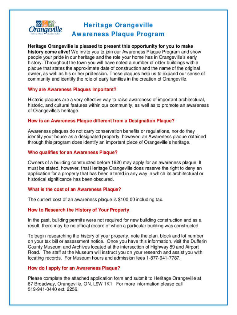 Get the free Awareness Plaque Info and Application. Awareness Plaque Info and Application