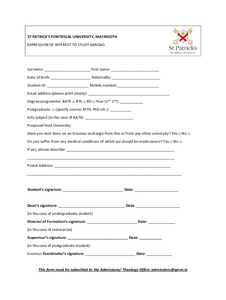 Fill out your apply todayst patricks college online with pdfFiller!