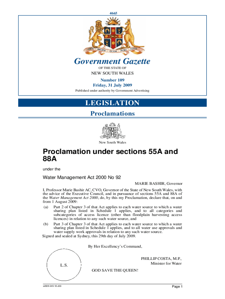 4665Government Gazette OF THE STATE OFNEW SOUTH WALES Number 109 Friday, 31 July 2009 Published under authority by Government AdvertisingLEGISLATION ProclamationsNew South WalesProclamation under