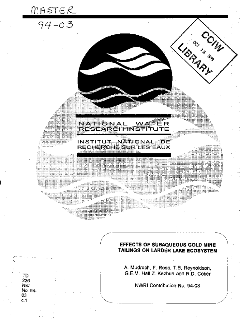 A. Mudroch, F. Rosa, T.B. Reynoldson,G.E.M. HallTD2261NwR|N87No. 9403c.1Z.Kezhun and R.D. CokerContribution