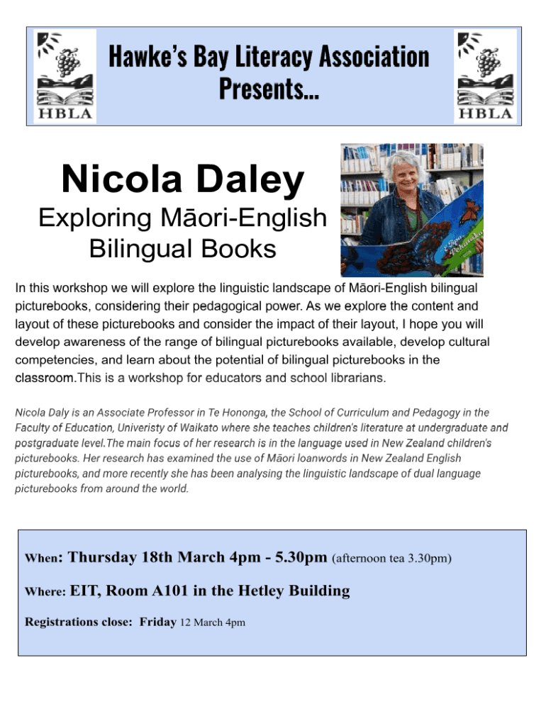 Nicola Daley Exploring MoriEnglish Bilingual BooksRegistrations close: Wednesday 25 SeptemberTO REGISTER Please scan completed registration form and email to: annette@twyford.school.nzREGISTRATIONRegistrations