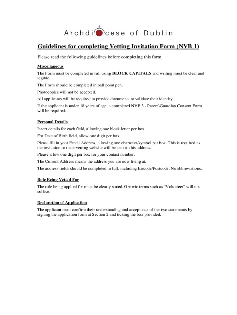 Guidelines for completing Vetting Invitation Form (NVB 1) Please read the following guidelines before completing this form. Miscellaneous The Form must be completed in full using BLOCK CAPITALS and