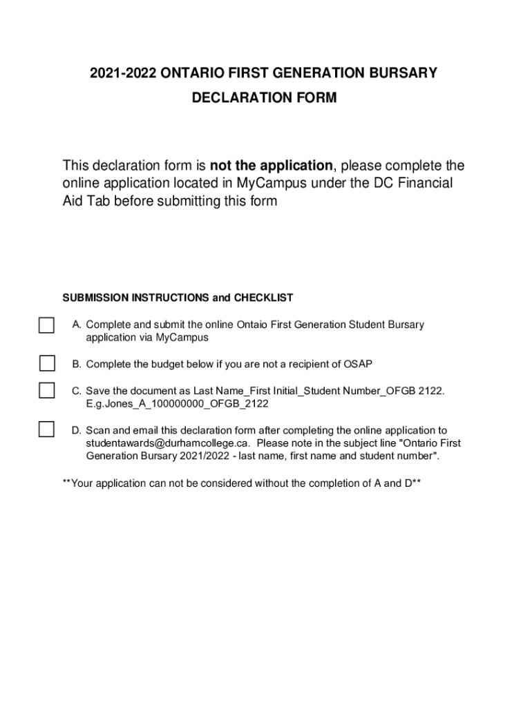 20212022 ONTARIO FIRST GENERATION BURSARY