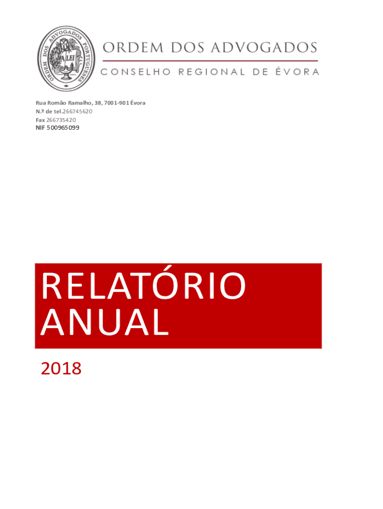 Rua Romo Ramalho, 38, 7001901 vora N. de tel.266745620 Fax 266735420NIF 500965099RELATRIO ANUAL 2018Contedos Introduo:___12 Iniciativas ___ 38O Conselho Regional: composio e Pelouros___910 Actividades