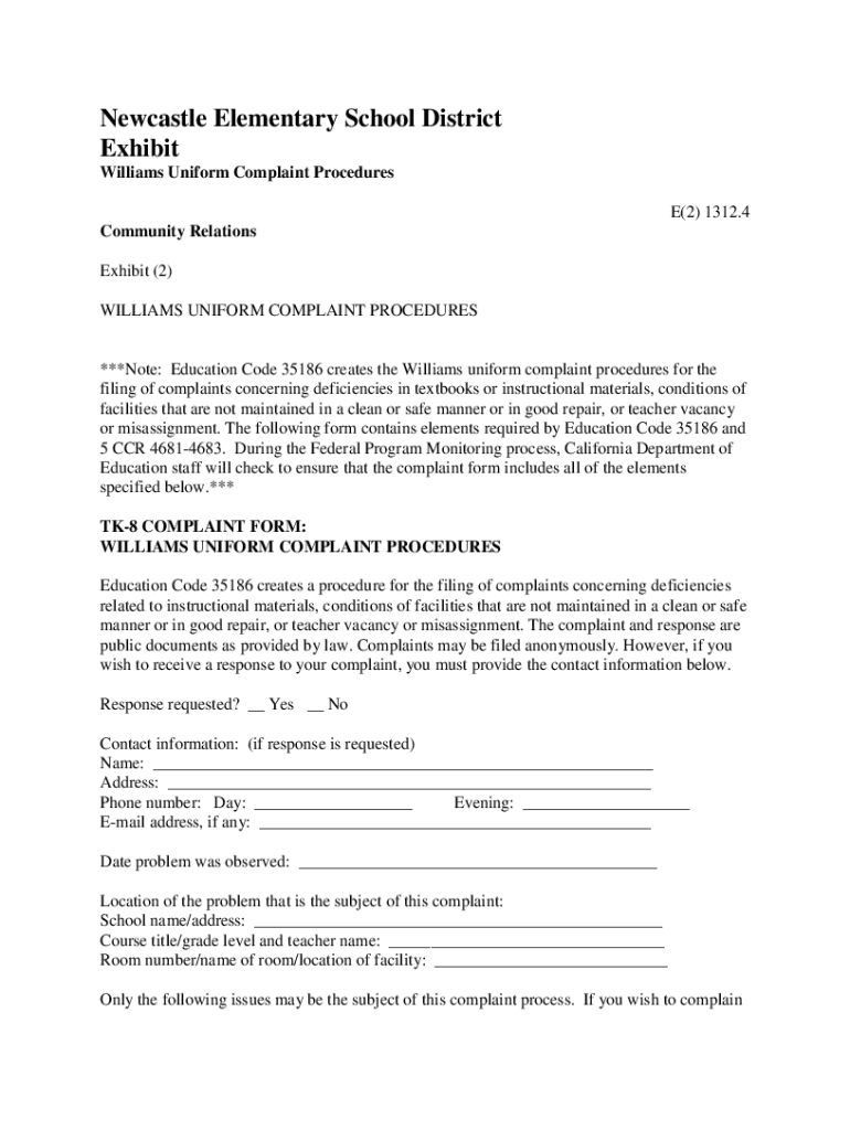 Williams Uniform Complaint Procedures